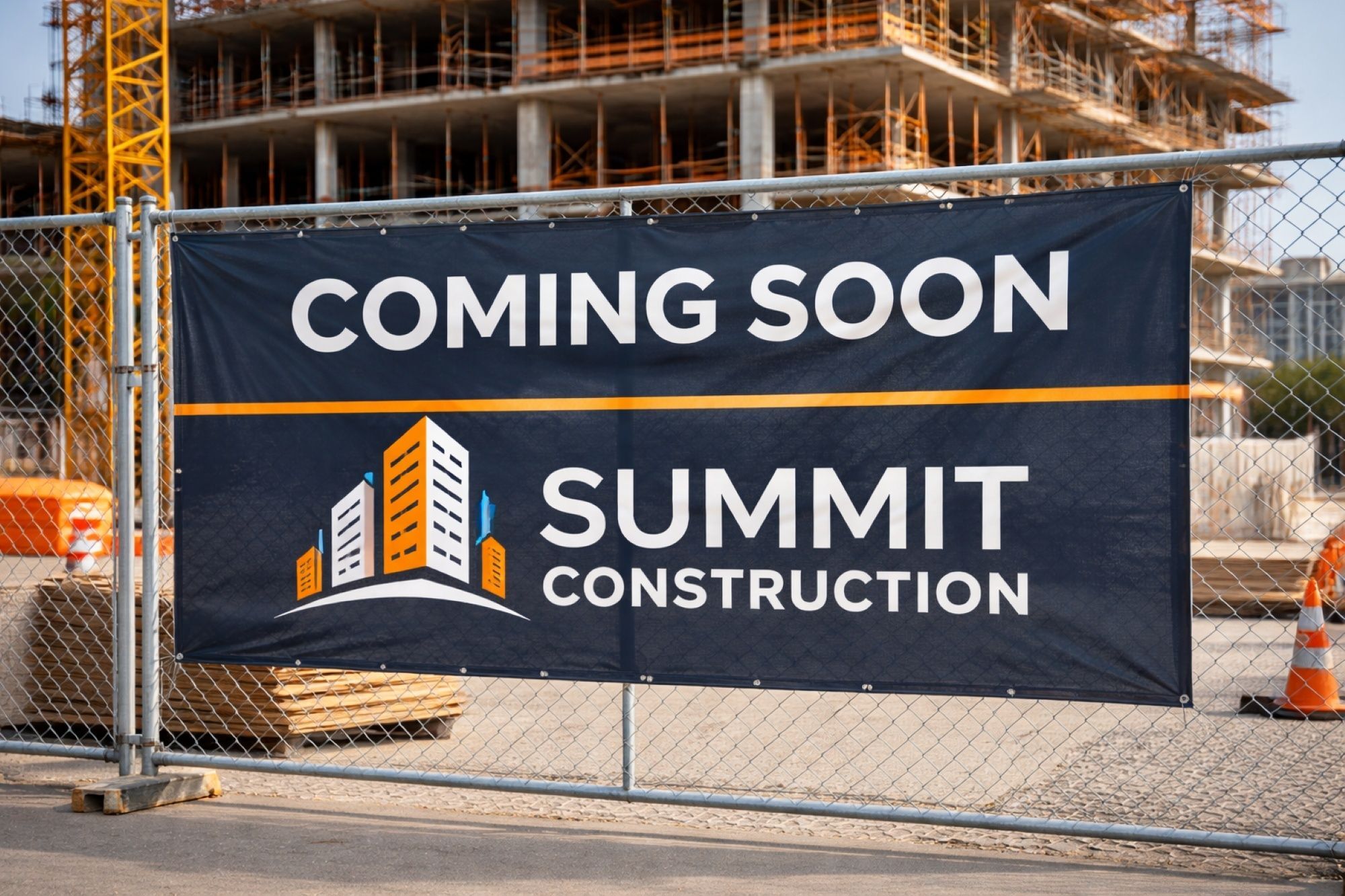 Construction banners typically display project branding, contractor information, safety messaging, or leasing announcements. Positioned along fencing or building exteriors, these banners help inform passersby while reinforcing the professional image of the companies involved in the project.
